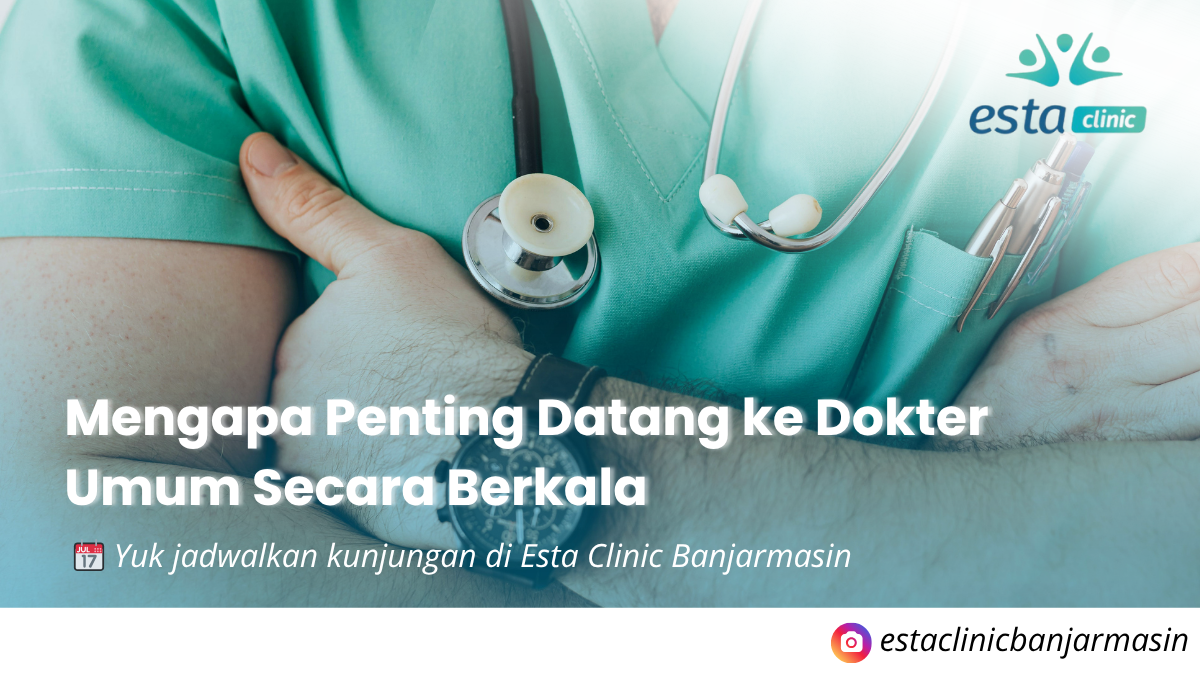 Konsultasi dengan dokter umum Banjarmasin di Esta Clinic dapat membantu kamu mendeteksi berbagai masalah kesehatan sejak dini—mulai dari flu, demam, tekanan darah, hingga pemeriksaan rutin sebelum ke spesialis.
